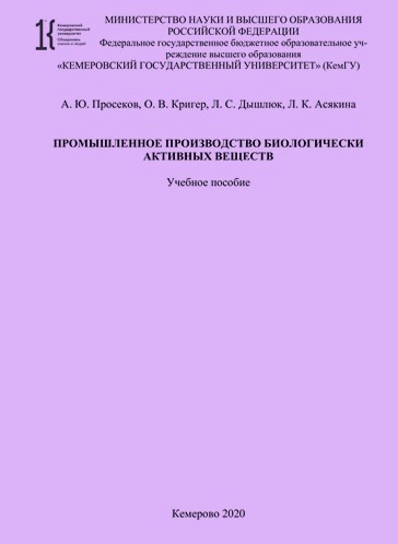 Промышленное производство биологически активных веществ : учебное пособие / А. Ю. Просеков, О. В. Кригер, Л. С. Дышлюк, Л. К. Асякина. – Кемерово : КемГУ, 2020. – 82 с. – ISBN 978-5-8353-2687-7.