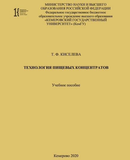Киселева, Т. Ф. Технология пищевых концентратов : учебное пособие / Т. Ф. Киселева. – Кемерово : КемГУ, 2020. – 255 с. – ISBN 978-5-8353-2657-0.