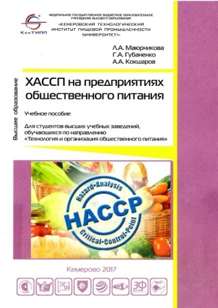 Маюрникова, Л. А. ХАССП на предприятиях общественного питания : учебное пособие / Л. А. Маюрникова, Г. А. Губаненко, А. А. Кокшаров. – Кемерово : КемТИПП, 2017. – 115 с. – (Высшее образование). – ISBN 979-5-89289-162-1.