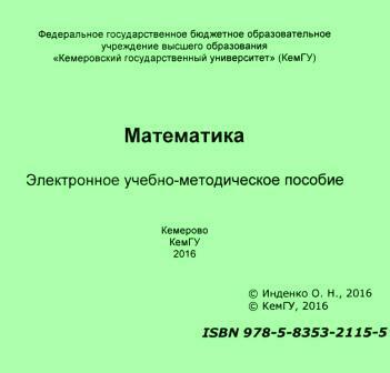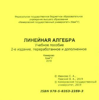 Кучер, Н. А. Курс высшей математики. Ч. 1. Основы алгебры : учебное пособие / Н. А. Кучер, О. В. Малышенко, А. А. Жалнина. – Кемерово : КемГУ, 2019. – 131 с. – (Высшее образование). – ISBN 978-5-8353-2578-8.