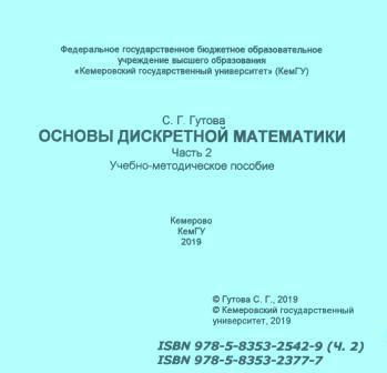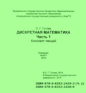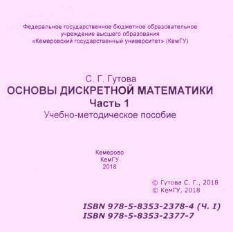 Гутова, С. Г. Основы дискретной математики. Ч. 1 : учебно-методическое пособие / С. Г. Гутова. – Кемерово : КемГУ, 2018. – 87 с. – ISBN 978-5-8353-2378-4.