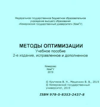Крутиков, В. Н. Методы оптимизации : учебное пособие / В. Н. Крутиков, В. В. Мишечкин. – 2-е изд., доп. и перераб. – Кемерово : КемГУ, 2019. – 106 с. – ISBN 978-5-8353-2437-8.