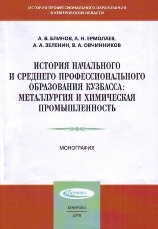 История начального и среднего профессионального образования Кузбасса: металлургия и химическая промышленность / А. В. Блинов, А. Н. Ермолаев, А. А. Зеленин [и др.], отв. ред. Е. Л. Руднева, науч. ред. В. А. Овчинников. – Кемерово : КРИРПО, 2018. – 133 с. – (История профессионального образования в Кемеровской области). – ISBN 978-5-9572-0181-6.