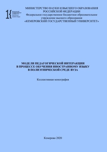 Савельева, И. В. Модели педагогической интеракции в процессе обучения иностранному языку в полиэтнической среде вуза : коллективная монография / И. В. Савельева, О. Н. Гринвальд, Р. С. Исламов ; научный редактор И. В. Савельева. – Кемерово : КемГУ, 2020. – 222 с. – ISBN 978-5-8353-2699-0.