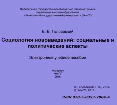Головацкий, Е. В. Социология нововведений: социальные и политические аспекты : электронное учебное пособие / Е. В. Головацкий. – Кемерово : КемГУ, 2016. – CD-ROM. – ISBN 978-5-8353-2084-4.