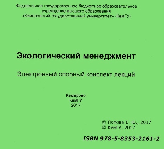 Экологический менеджмент : электронный опорный конспект лекций / составитель Е. Ю. Попова. – Кемерово : КемГУ, 2017. – CD-ROM. – ISBN 978-5-8353-2161-2.