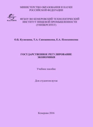 Кузнецова, О. Б. Государственное регулирование экономики : учебное пособие для студентов вузов / О. Б. Кузнецова, Т. А. Сапожникова, Е. А. Плосконосова. – Кемерово : КемТИПП, 2016. – 123 с. – (Высшее образование). – ISBN 978-5-89289-979-6.