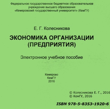 Колесникова, Е. Г. Экономика организации (предприятия) : электронное учебное пособие / Е. Г. Колесникова. – Кемерово : КемГУ, 2016. – CD-ROM. – ISBN 978-5-8353-1920-6.