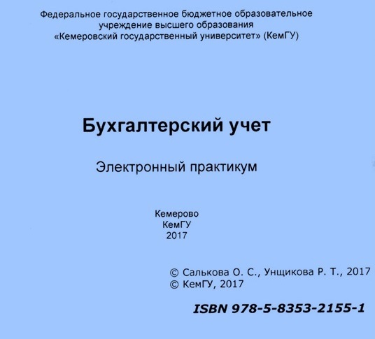 Салькова, О. С. Бухгалтерский учет : электронный практикум / О. С. Салькова, Р. Т. Унщикова. – Кемерово : КемГУ, 2017. – 96 с. – ISBN 978-5-8353-2155-1.