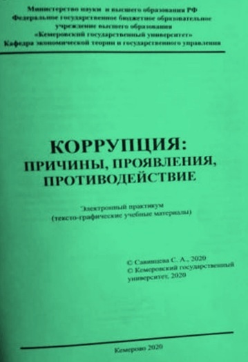 Коррупция: причины, проявления, противодействие : электронный практикум / составитель С. А. Савинцева. – Кемерово : КемГУ, 2020. – 59 с. – (Высшее образование).