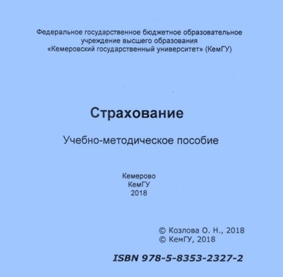 Козлова, О. Н. Страхование : учебно-методическое пособие / О. Н. Козлова. – Кемерово : КемГУ, 2018. – 67 с. – ISBN 978-5-8353-2327-2.