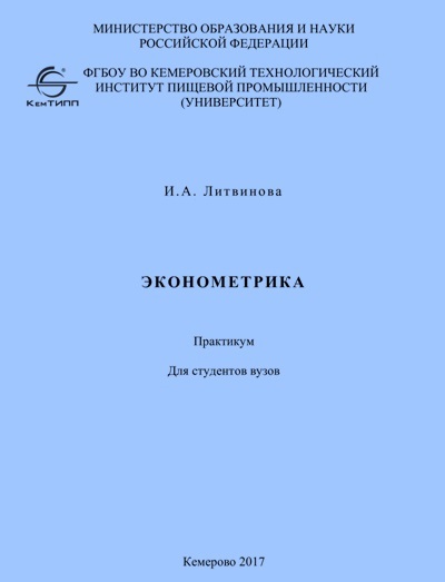 Литвинова, И. А. Эконометрика : практикум для студентов вузов / И. А. Литвинова. – Кемерово : КемГУ, 2017. – 103 с. – ISBN 979-5-89289-156-0.