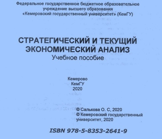 Салькова, О. С. Стратегический и текущий экономический анализ : учебное пособие / О. С. Салькова. – Кемерово : КемГУ, 2020. – 129 с. – ISBN 978-5-8353-2641-9.