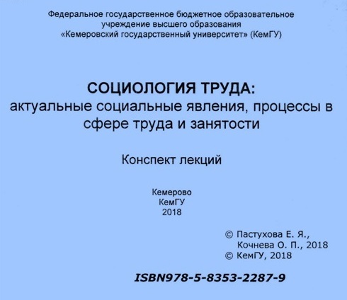 Пастухова, Е. Я. Социология труда: актуальные социальные явления, процессы в сфере труда и занятости : конспект лекций / Е. Я. Пастухова, О. П. Кочнева. – Кемерово : КемГУ, 2018. – 217 с. – ISBN 978-5-8353-2287-9.