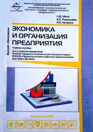 Менх, Л. В. Экономика и организация предприятия : учебное пособие / Л. В. Менх, Е. Е. Румянцева, И. К. Куприна [и др.] . – Кемерово : КемТИПП, 2016. – 156 с. – (Высшее образование). – ISBN 978-5-89289-940-6.