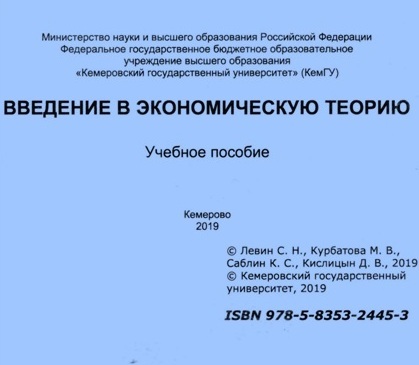 Левин, С. Н. Введение в экономическую теорию : учебное пособие / С. Н. Левин, М. В. Курбатова, Д. В. Кислицын. – Кемерово : КемГУ, 2019. – 104 с. – ISBN 978-5-8353-2445-3.