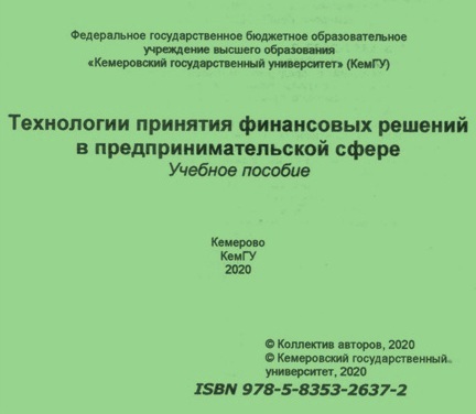 Технологии принятия финансовых решений в предпринимательской сфере : учебное пособие / под редакцией Е. А. Федуловой. – Кемерово : КемГУ, 2020. – 230 с. – ISBN 978-5-8353-2637-2.
