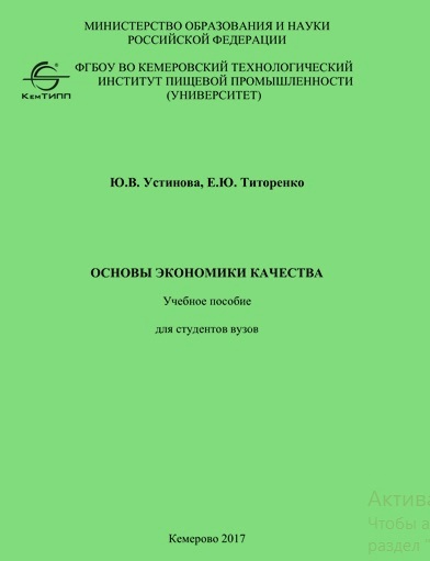 Устинова, Ю. В. Основы экономики качества : учебное пособие / Ю. В. Устинова, Е. Ю. Титоренко. – Кемерово : КемГУ, 2017. – 94 с. – ISBN 978-5-89289-998-7.