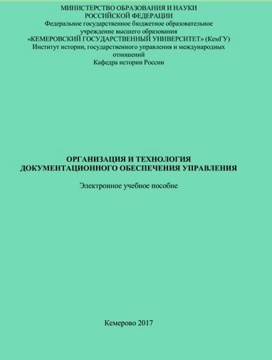 Мишенин, С. Е. Организация и технология документационного обеспечения управления : электронное учебное пособие / составитель С. Е. Мишенин. – Кемерово : КемГУ, 2017. – 477 с. – ISBN 978-5-8353-2149-0.