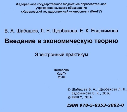 Шабашев, В. А. Введение в экономическую теорию : электронный практикум / В. А. Шабашев, Л. Н. Щербакова, Е. К. Евдокимова. – Кемерово : КемГУ, 2016. – CD-ROM. – ISBN 978-5-8353-2082-0.